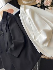 自主高街时装走秀单品黑鳞水钻黑吸烟皮领西服轻奢高级感垫肩西装