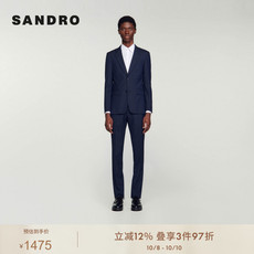 SANDRO Outlets秋冬男装时尚简约通勤深蓝色翻领单排扣西装外套