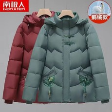 南极人冬季休闲中老年羽绒服宽松大码白鸭绒妈妈气质保暖外套