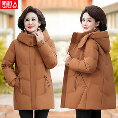 南极人冬装保暖妈妈款羽绒服休闲加厚气质白鸭绒宽松连帽大码外套