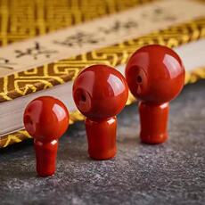 建廷天然保山南红三通佛头 配珠 精工雕刻满色满肉手串佛珠配饰