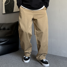 马克斯星球 简约时尚卡其色阔腿裤男通勤高腰青春直筒长裤休闲款