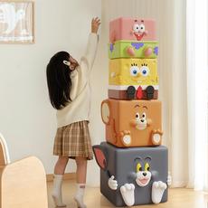 创意儿童收纳小板凳换r鞋凳魔方储物凳沙发凳矮凳子家用卡通皮凳