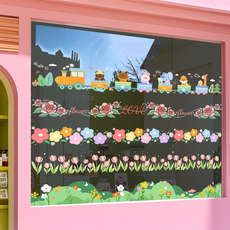 彩色蜜蜂蝴蝶雏菊花朵卡通贴装饰橱窗大门玻璃双面无胶静电小贴画