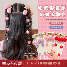 儿童格子花朵发圈女童红色卡通猫咪发绳公主头饰皮筋头绳新年发饰