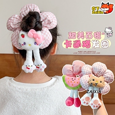 卡通小猫屁屁儿童大肠发圈女童花朵头饰2025新款丸子头充棉扎发绳
