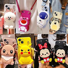 零钱包适用苹果14promax手机壳新女款iPhone13防摔11/12mini透明xr卡通公仔皮卡丘7plus网红8p/se2保护套6s