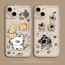 适用于苹果13手机壳15/16可爱卡通iphone14pro 透明13pro新款ip12软硅胶11防摔xsmax小狗plus全包镜头7/8情侣