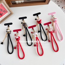 中式招财猫手机挂绳可爱卡通公仔手腕挂件加粗尼龙电话手绳发财金属吊坠挂链结实耐用个性吊绳男女卡片贴片壳