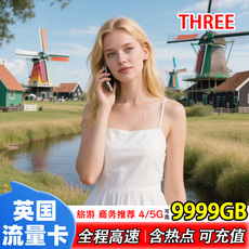 英国电话卡three高速4G/5G流量手机上网卡伦敦旅游留学可选999GB