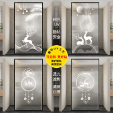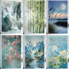 定制卫生间推拉门玻璃贴膜透光不透明窗户防窥中式荷花磨砂贴纸