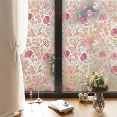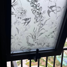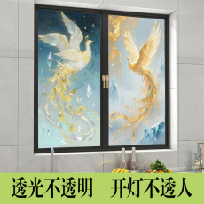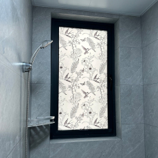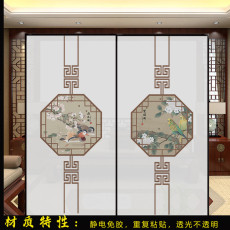 中式花鸟静电磨砂玻璃贴纸厕所窗户卧室卫生间防窥透光不透明贴膜