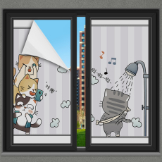 卫生间窗户玻璃贴膜卡通可爱透光不透人磨砂静电贴防窥防走光贴纸