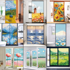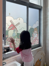 卡通窗户磨砂玻璃贴膜透光不透人防走光防窥静电贴卫生间玻璃贴纸