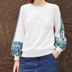 东大门2024秋季新款宽松套头泡泡袖卫衣优雅气质长袖名族风短外套
