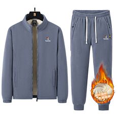 运动套装男士春秋冬季休闲爸爸装中老年人加绒加厚翻领卫衣三件套