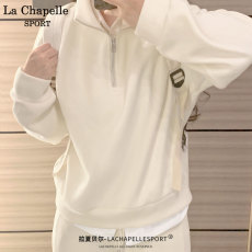 拉夏贝尔加绒加厚圆领白色打底衫女秋冬中长款卫衣配鲨鱼裤的上衣