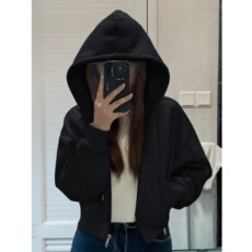 黑色连帽卫衣女冬加绒加厚拉链开衫外套巨好看的早秋穿搭韩系上衣