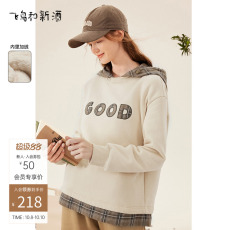 飞鸟和新酒小个子加厚加绒卫衣女短款时尚的洋气假两件休闲上衣