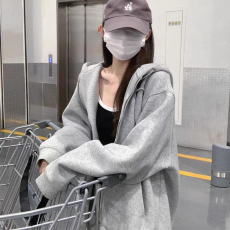 美式oversize巨好看的女士卫衣2025新款早秋冬季加绒开衫连帽外套