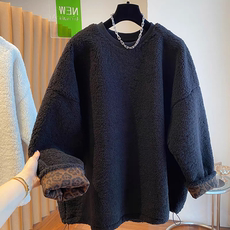 加厚加绒羊羔绒纯棉卫衣女2024秋冬新款保暖韩版宽松圆领套头上衣
