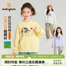 布丁哈鲁春装女童童装休闲上衣2026春季新款儿童公仔假两件卫衣