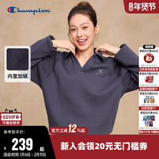 Champion冠军加绒圆领卫衣女秋季新款植绒保暖复古休闲上衣