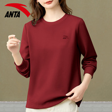 安踏卫衣女款春秋宽松大码套头衫上衣休闲圆领加绒女士长袖运动服