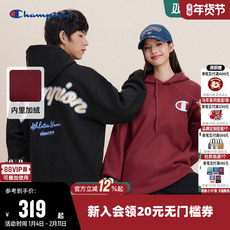 Champion冠军卫衣女冬季情侣刺绣大C logo加绒连帽休闲保暖上衣男