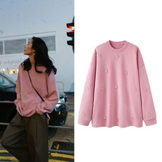烫钻粉色卫衣女春秋冬新款宽松韩版ins减龄套头炸街闪闪显瘦上衣