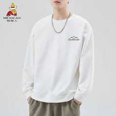 高端白色纯棉圆领卫衣春秋休闲宽松加绒内搭无帽套头减龄女士上衣