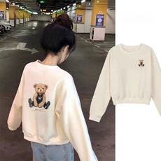 加绒卫衣春秋新款外贸女装圆领宽松大码卡通印花套头卫衣16247