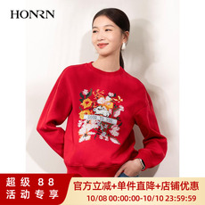 HONRN/红人休闲减龄宽松红色连帽套头卫衣外套女春秋HH11SY333