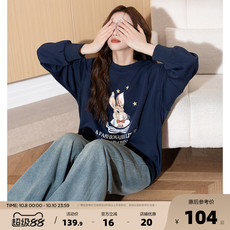 Hazzys哈吉斯宽松卫衣女春秋季圆领套头休闲时尚长袖打底衫上衣潮