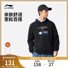 李宁卫衣男士秋季情侣圆领套头衫黑色宽松长袖加绒上衣运动服女款