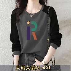 100%纯棉长袖T恤上衣女秋冬韩版宽松遮肉显瘦套头外穿拼接薄卫衣B