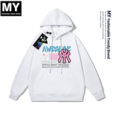 秋季潮牌连帽印花卫衣男女宽松风套头长袖休闲日常上衣成人儿童款