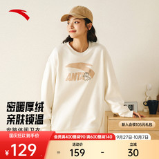 安踏圆领套头卫衣女士秋季新款简约印花纯色宽松打底休闲运动上衣
