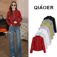 MianCun美式立领定制条纹拉链短款卫衣外套女休闲百搭收腰上衣