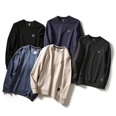 买一送一卫衣男美式重磅潮牌卫衣男圆领纯白色长袖打底衫内搭上衣