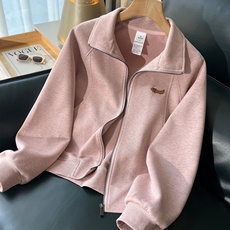 粉色卫衣女2025新款春秋上衣小个子宽松拉链立领爆款百搭开衫外套