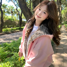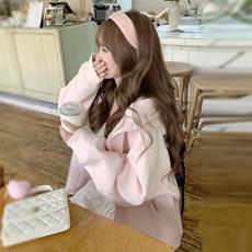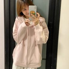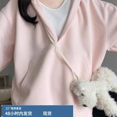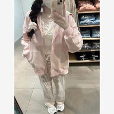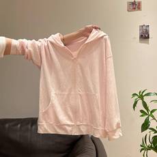 韩系甜美粉色薄款连帽卫衣外套女早秋宽松慵懒风长袖显瘦开衫上衣