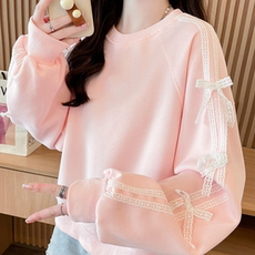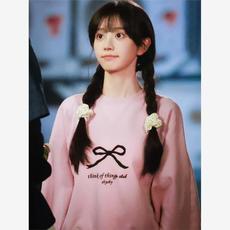 欧洲田曦薇同款~粉色蝴蝶结刺绣圆领套头长袖卫衣女秋季宽松减龄