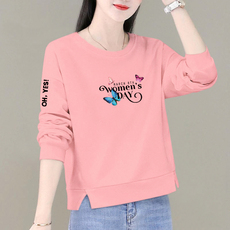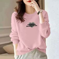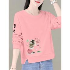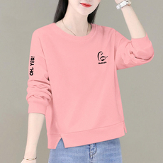 早秋薄款圆领卫衣女秋装宽松显瘦长袖上衣2025年新款粉色无帽秋衣