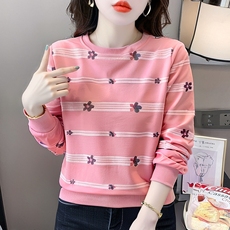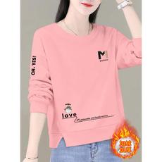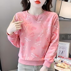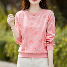 粉色长袖t恤女 2025新款爱心宽松圆领卫衣外套女装秋季百搭上衣服