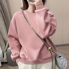 小红书推荐新品粉色卫衣女加绒款纯棉宽松显示百搭圆领开学季长袖