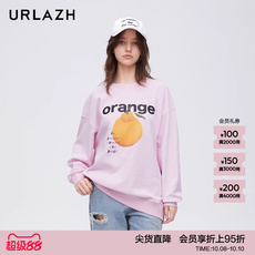 URLAZH有兰新款纯棉粉色落肩重工休闲宽松时尚印花圆领卫衣女