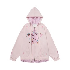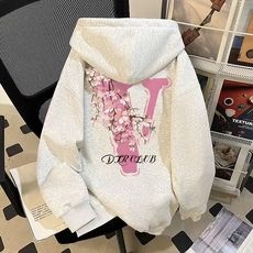 2025新款国潮牌粉色满印碎花连帽开衫卫衣女宽松美式高街拉链外套