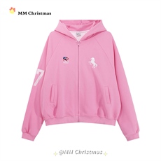 MMChristmas美式辣妹粉色小马刺绣连帽卫衣外套女宽松休闲百搭潮
