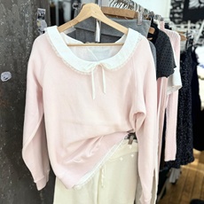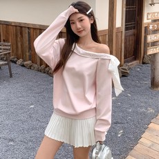 日本OFFCAT温柔粉色蝴蝶结绑带斜肩卫衣女秋别致设计感宽松甜美t